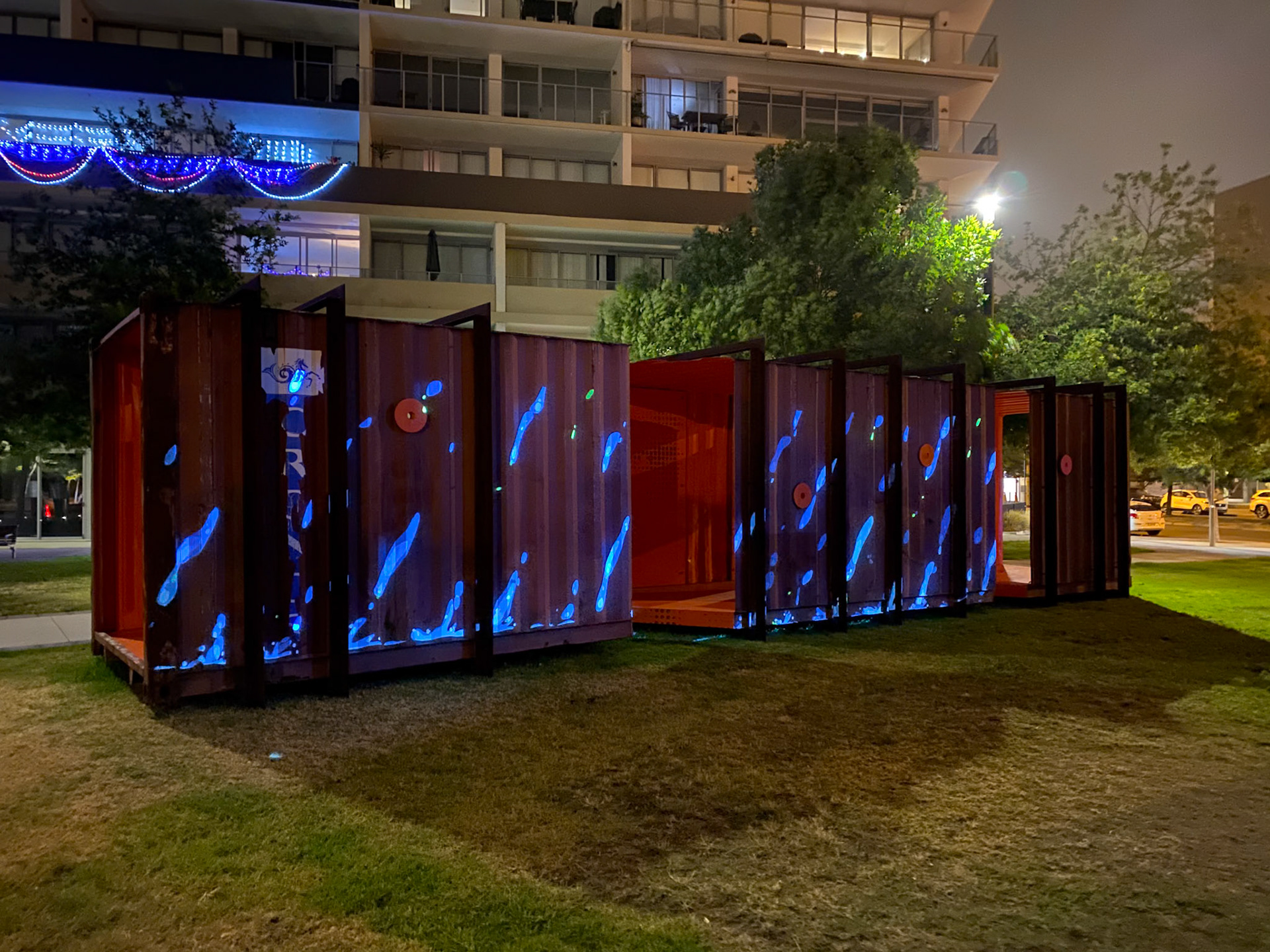 Location: Breakblock Park, Honeysuckle Budget: $74,336.00 Lightscape extended the placemaking ambitions of Honeysuckle Lights through an interactive lighting installation at Brake Block Park in Newcastle. Funded by the Newcastle Port Community Contribution Fund, the project transformed a dimly lit green space into a responsive public environment using sensor technology. Designed as both activation and research platform, Lightscape received formal ethics approval to map patterns of public interaction, generating a dataset to inform future urban activation strategies in partnership with the City of Newcastle. Over a 27-day period, approximately 1,000 people engaged with the installation, demonstrating strong community impact and validating interactive light as a tool for enhancing safety, visibility, and public amenity. Lightscape positioned digital infrastructure not simply as spectacle, but as a measurable, evidence-based approach to placemaking in Newcastle.